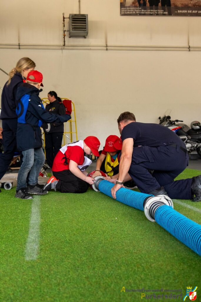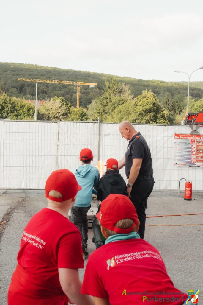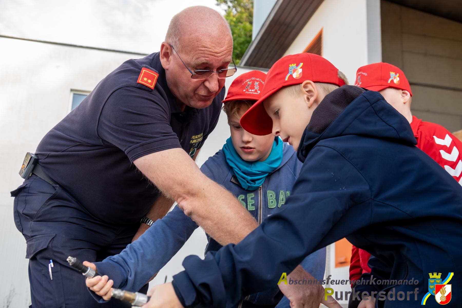 Nach der Ankunft und Begrüßung durch Abschnittsfeuerwehrkommandant Brandrat Michael Gindl sowie den Vizebürgermeister Viktor Weinzinger ging es für die 30 Kinder in sieben Gruppen an insgesamt acht spannende Stationen: