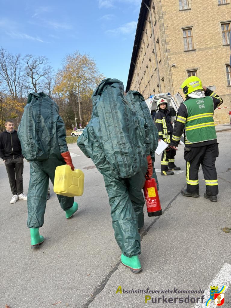 Pressbaum, 8. November 2025 – Am Samstagvormittag fand im Gymnasium Sacré Coeur Pressbaum eine großangelegte Einsatzübung der Schadstoffgruppe des Feuerwehrabschnittes Purkersdorf statt.