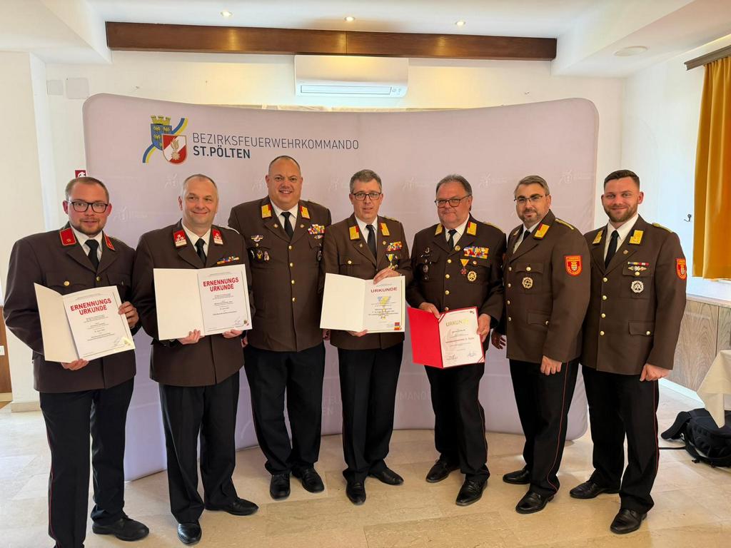 Im feierlichen Rahmen wurden dabei verdiente Kameraden des Feuerwehrabschnittes Purkersdorf für ihre Leistungen gewürdigt und in neue Funktionen im Bezirk St. Pölten bestellt: